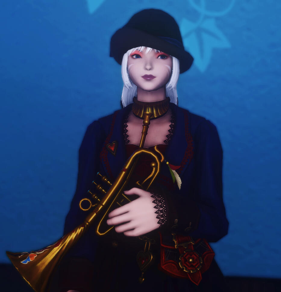 An extravagant miqo'te famous for her hat and a bleached white wig that she never removes, Anna-Maria is an expert saxophone and trumpet player, backing up the lead voice with fast-paced cadenzas and amazing solos.